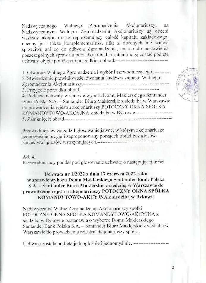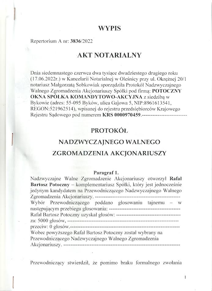 Protokół Walnego Zgromadzenia Akcjonariuszy